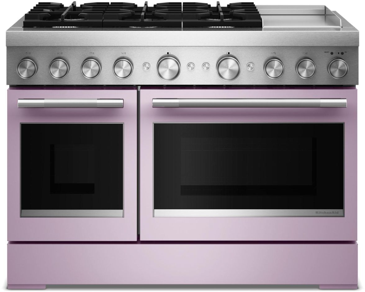 Satisfaites votre envie de créer avec une cuisinière KitchenAid® de 48 pouces de type commercial avec grille électrique chromée. Cette cuisinière à double combustible combine un four double électrique et une surface de cuisson à gaz à 6 brûleurs. Deux brûleurs à double flamme Ultra Power™ de 20 000 BTU offrent puissance et précision pour saisir, mijoter, faire sauter et sauter avec succès. Even-Heat™ True Convection permet de cuire et de rôtir de manière homogène, et le mode friture à l'air permet d'obtenir des résultats croustillants et dorés.Read More