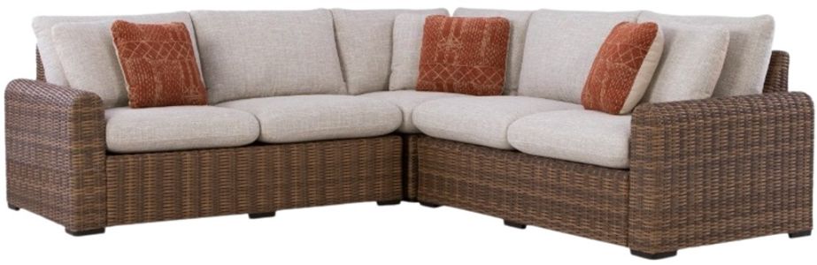 Get back to nature with the relaxed styling of this outdoor sectional. Crafted with a sturdy aluminum frame and resin wicker, it offers exceptional durability and style. The sectional's plush cushions, covered in high-performance Nuvella® fabric, are as resilient as they are attractive. Sounds like fabulous form and function to us.Read More